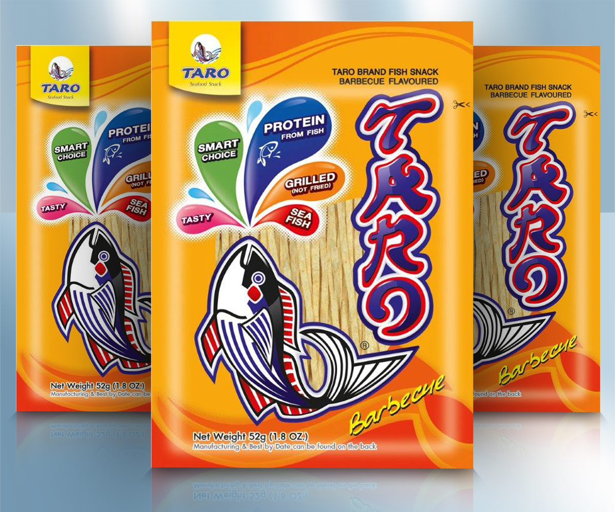 Aperitivos de pescado: un plato preparado a base de pescado seco con sabor a barbacoa. Ingredientes: Preparado de pescado63% (Tumbil(Saurida spp.), huevo entero en polvo, regulador de acidez: (E450, E451)), azúcar, almidón de yuca (contiene dióxido de azufre), regulador de humedad: (E420), harina de trigo, especias con sabor a barbacoa (lactosa, azúcar, semillas de mostaza, coco, proteína vegetal hidrolizada (soja, maíz), sal comestible, chalotas secas, extracto de pimentón, colorante: (E160c, E150c), aromas, almidón de yuca, almidón de maíz), sal comestible, salsa de soja(agua, soja,harina de trigo, Sal comestible, azúcar), potenciador del sabor (E621, E635), extracto de chile. País de origen: Tailandia. Conservar en un lugar fresco y seco. Proteger de la luz solar directa. Consumir en un plazo de 24 horas tras su apertura. La fecha de caducidad mínima sin abrir es la siguiente: en la parte posterior, aparece un campo blanco, segunda línea. Valor nutricional por 100 g: fibra dietética 1,5 g. Distribuidor: Heuschen & Schrouff OFT B.V., Apartado postal 30202 / 6370 KE Landgraaf, Países Bajos. Valor nutricional por 100 g: Valor energético: 1329 kJ / 313 kcal, Grasas: <0,5 g, de las cuales ácidos grasos saturados: 0,2 g, Hidratos de carbono: 54 g, de los cuales azúcares: 28 g, Proteínas: 23 g, Sal: 6,6 g,