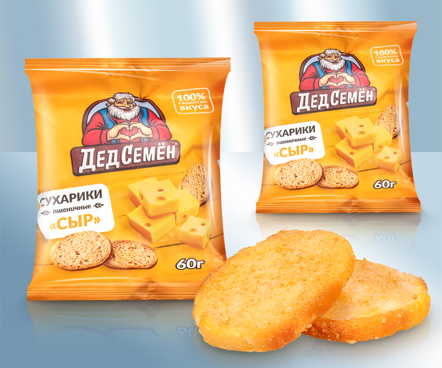 El dibujo refleja la dirección del gusto. Ingredientes: Pan de trigo (harina de trigo,agua, azúcar, levadura, sal, huevo entero en polvo),aceite de girasol, mezcla de especias (sal, maltodextrina, producto de suero de leche, glucosa, aromas deshidratados, queso en polvo, potenciadores del sabor: E621, E627, E613, reguladores de acidez: (E270, E327, E330), colorantes: (E100, E160c), agente de fluidez para polvos: (E551). Conservar en un lugar fresco y seco. Distribución: Lackmann Fleisch- und Feinkostfabrik GmbH, Carl Benz Straße 10, 77731 Willstätt, Alemania. Uso: ver pie de imprenta, segunda línea. Sugerencia de presentación. Valor nutricional por 100 g: Energía Valor nutricional: 1353 kJ / 319 kcal, Grasas: 2,1 g, de las cuales saturadas: 1,5 g, Hidratos de carbono: 63 g, de los cuales azúcares: 7,1 g, Proteínas: 12 g, Sal: 3,1 g.