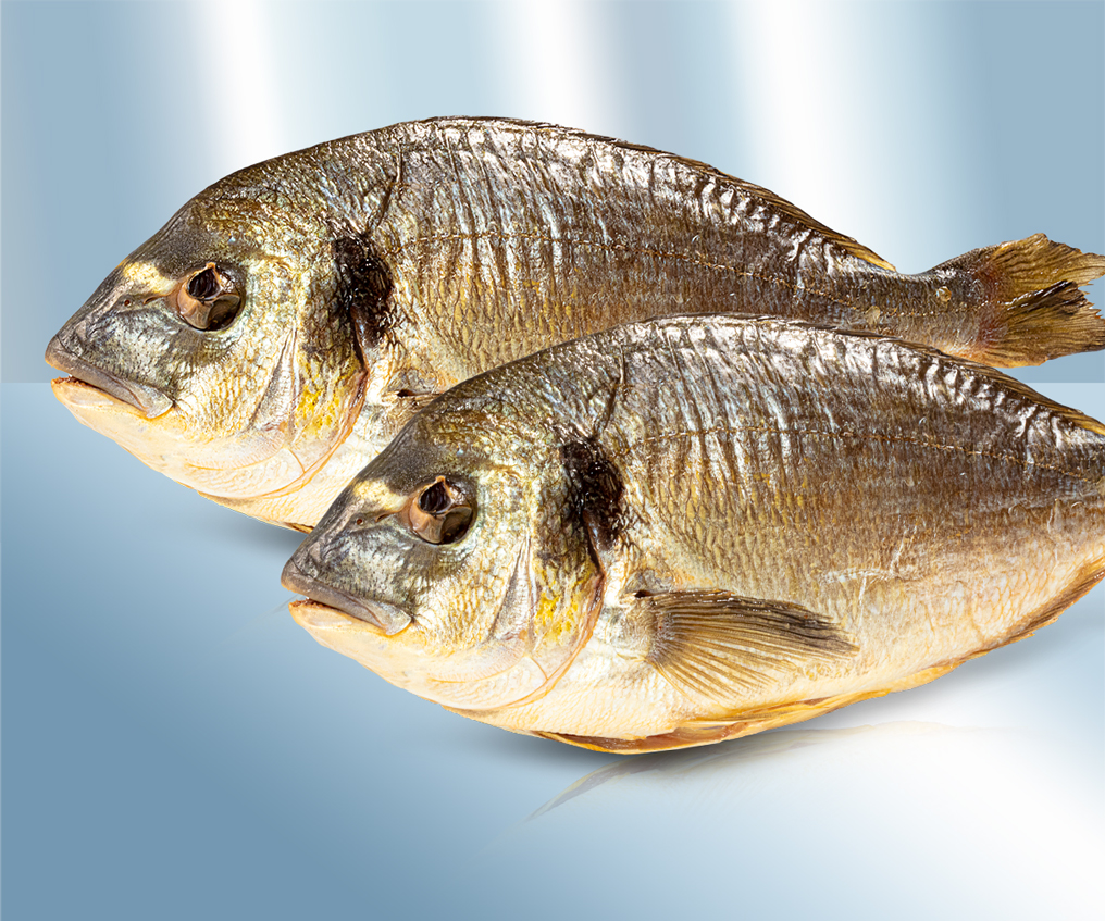 Dorada (Sparus aurata), eviscerada, con cabeza, salada, ahumada en frío.