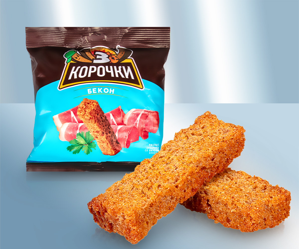 Snack de pan de centeno con sabor a tocino. "3 cortezas invencibles".