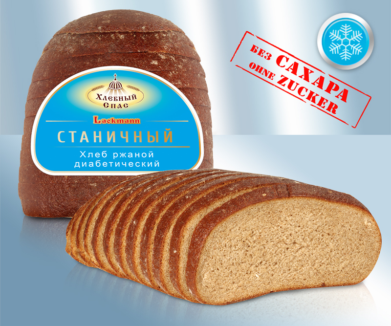 Pan de centeno "Stanichny", congelado. Ingredientes: harina 98% (harina de centeno 75%, harina de trigo), agua potable, sal yodada (sal de mesa, yoduro potásico), levadura. No vuelva a congelar el producto descongelado. Ventas: Lackmann Fleisch- und Feinkostfabrik GmbH, Carl Benz Straße 10, 77731 Willstätt, Alemania. Conservar sin abrir entre -25 °C y -18 °C y consumir antes del: Valor nutricional por 100 g: Valor energético: 888 kJ / 212 kcal, Grasas: 0,6 g, - de las cuales saturadas: 0,2 g, Hidratos de carbono: 45 g, - de los cuales azúcares: 0 g, Proteínas: 6,5 g, Sal: 1,1 g,
