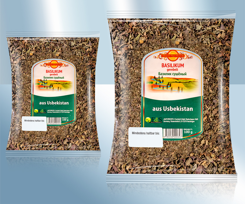 базилик, сушеный, втирают. . Происхождение: Узбекистан. Употребить до: См. на лицевой стороне. Сбыт: Lackmann Fleisch- und Feinkostfabrik GmbH, Carl Benz Straße 10, 77731 Willstätt, Германия. базилик, сушеный, втирают. .
