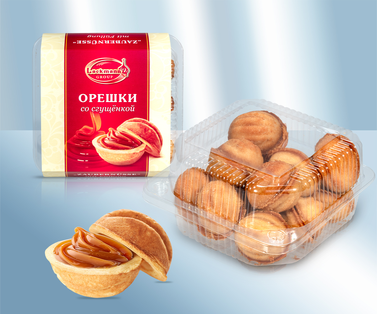 Состав: кремовая начинка с содержанием молока 50%: (сахар, вода, сухое обезжиренное молоко, пальмовое масло, загуститель: (модифицированный крахмал, E509), cтабилизатор: (E407), консервирующее вещество: (E200), загуститель: (E440), pегулятор кислотности: (E500), пшеничная мука, растительные жиры и масла: (пальма, ши (масляное дерево)), вода, сахарная пудра, инвертный сахарный сироп (сахар, вода, Регуляторы кислотности: (E330, E500)), цельное яйцо порошок, пальмовое масло, ароматизатор. Хранить в сухом прохладном месте. Сбыт: Lackmann Fleisch- und Feinkostfabrik GmbH, Carl Benz Straße 10, 77731 Willstätt, Германия. Употребить до: см. дополнительную этикетку. Пищевая ценность на 100g: Энергетическая ценность: 1930 kJ / 461 kcal, Жиры: 22g, - из них насыщенных жирных кислот: 7,1g, Углеводы: 58g, - из них сахара: 30g, Белки: 7,8g, Соль: 0g,