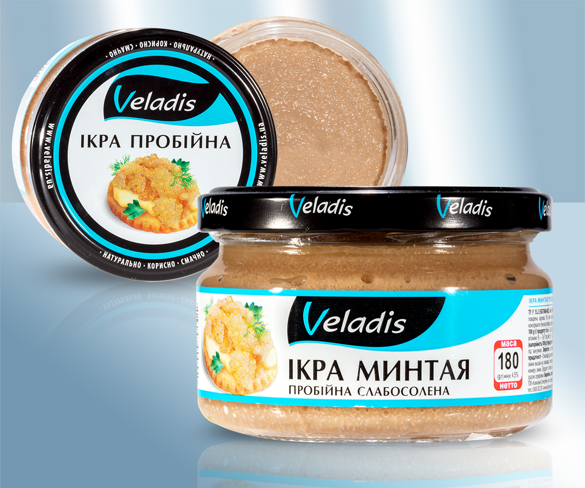 Икра минтая. . вариант сервировки показан на рисунке. Состав: Минтай Необработанная рыбья икра 94,5%, пищевая соль, подсолнечное масло, консервирующее вещество: (E202, E211). Страна-производитель: Украина. Сбыт: Lackmann Fleisch- und Feinkostfabrik GmbH, Carl Benz Straße 10, 77731 Willstätt, Германия. Неоткрытый продукт хранить при -6 °C - +6 °C и использовать до: см. дополнительную этикетку. Пищевая ценность на 100g: Энергетическая ценность: 550 kJ / 130 kcal, Жиры: 2,0g, - из них насыщенных жирных кислот: 0,3g, Углеводы: 0g, - из них сахара: 0g, Белки: 28g, Соль: 5,0g,