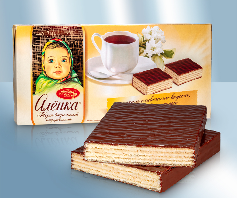 Вафельный торт в шоколадной глазури. . Состав: сахар, кондитерский жир (пальмовое масло частично отвержденное, Эмульгатор: (лецитин (соя)), антиоксиданты: (E300, E307)), какаосодержащая жировая глазурь 21% (сахар, пальмовое масло, пальмоядровое жир , Эмульгаторы: (E492, E476, лецитин (соя)), антиоксиданты: (E306), какао-порошок, ароматизатор), вафли 18%: (вода, пшеничная мука, подсолнечное масло, цельное яйцо порошок, пищевая соль, Эмульгатор лецитин (соя)), Разрыхлитель теста: (E500), сывороточный продукт, ароматизатор. Данный продукт может содержать следы: Арахис, Миндаль, диоксид серы. Хранить в сухом прохладном месте. Защитить от прямых солнечных лучей. Употребить до: см. оттиск, вторая строка. Пищевая ценность на 100g: Энергетическая ценность: 2290 kJ / 550 kcal, Жиры: 33g, - из них насыщенных жирных кислот: 15g, Углеводы: 57g, - из них сахара: 41g, Белки: 6,0g, Соль: 0,34g,