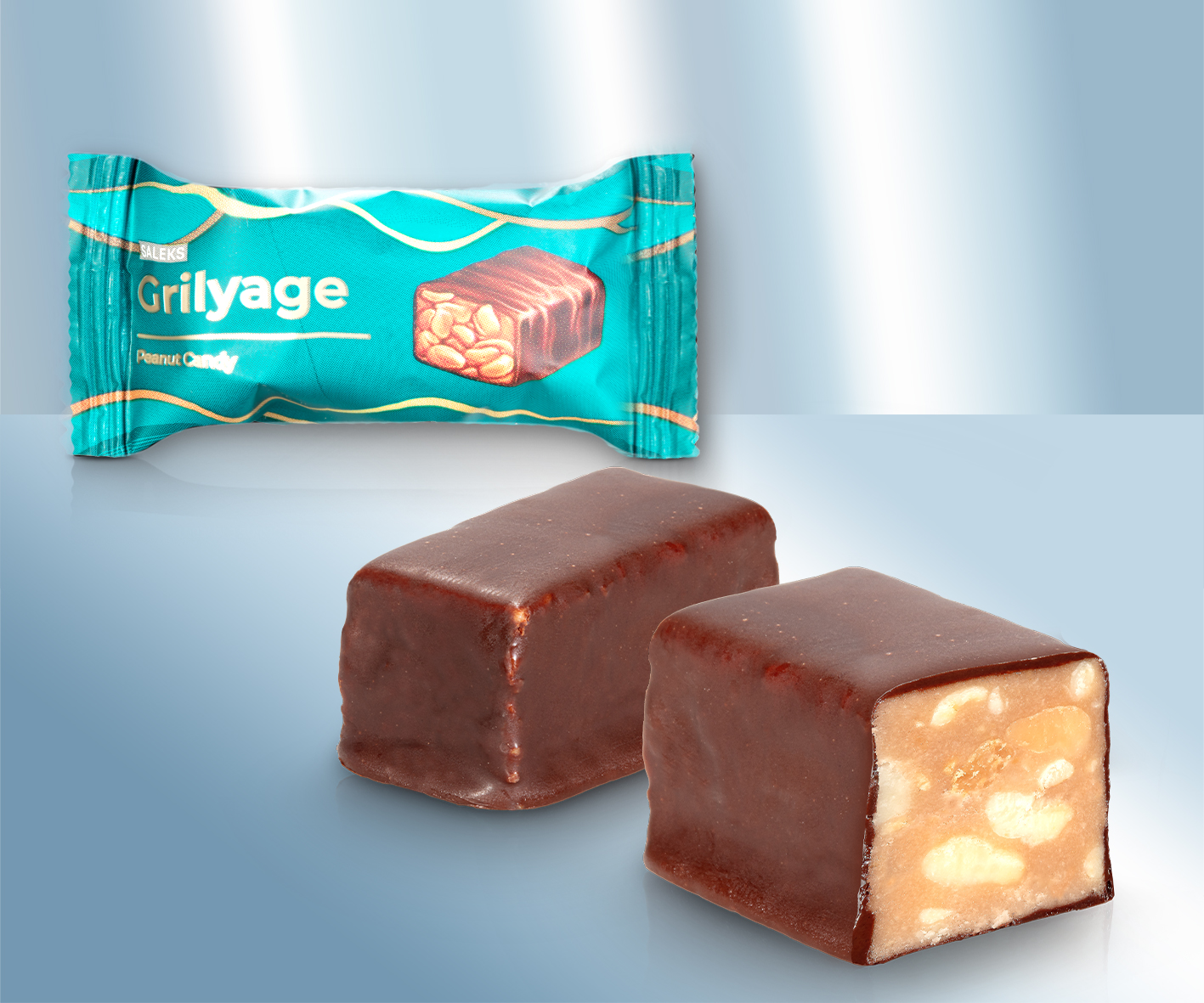Конфеты с арахисом, в какаосодержащей глазури.. Товар продавать только неупакованным. Состав: жареный арахис, 41,67%, какаосодержащая жировая глазурь 18,5% (сахар, пальмоядровое жир , какао порошок обезжиренное 17,5%, Эмульгатор: E322 (соя), пищевая соль, ароматизатор), глюкозный сироп, сгущенное молоко с сахаром (цельное молоко, обезжиренное молоко, сахар, лактоза), сахар, вода, маргарин (пальмовое масло, вода, пищевая соль, Эмульгаторы: (E471, E433, E322 (подсолнух)), консервирующее вещество: E202, pегулятор кислотности: E330, ароматизатор, Краситель: E160a), ароматизатор. Может содержать: глютен, лесные орехи, кунжут, яйца. содержание какао относится к всей продукции 3,2%. Хранить в сухом прохладном месте. Защитить от прямых солнечных лучей. Употребить до: см. дату на белой этикетке с текстом на немецком языке., указание даты. Пищевая ценность на 100g: пищевые волокна: 2,8г. Сбыт: Lackmann Fleisch- und Feinkostfabrik GmbH, Carl-Benz-Straße 10, 77731 Willstätt, Deutschland. Пищевая ценность на 100g: Энергетическая ценность: 2239 kJ / 536 kcal, Жиры: 32g, - из них насыщенных жирных кислот: 7,9g, Углеводы: 47g, - из них сахара: 34g, Белки: 14g, Соль: 0,25g,
