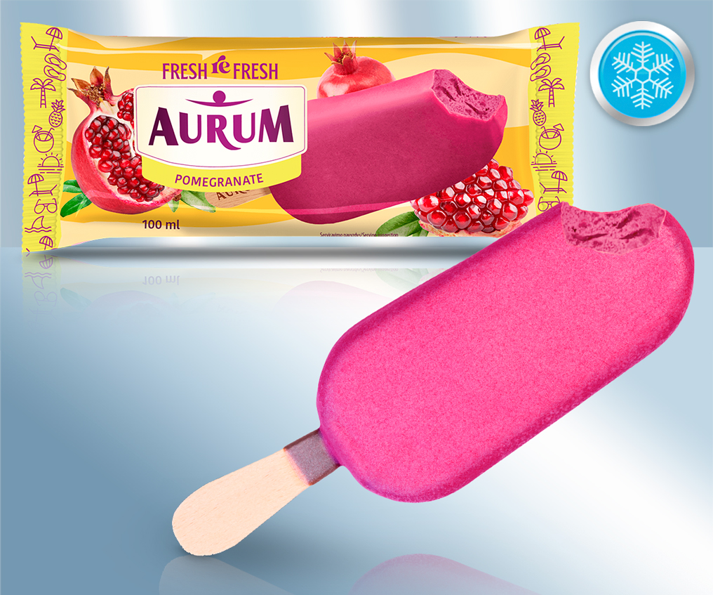 Мороженое со вкусом граната в глазури. 100 мл. Рисунок отражает направление вкуса. Состав: вода, глазурь 21,9%: (кокосовое масло, сахар, сывороточный продукт, йогуртовый порошок: (обезжиренное молоко, сывороточный продукт, молочнокислые культуры), Эмульгатор: (E322), Краситель, (E120)), Гранат продукт 9,4%: (вода, сахар, Концентрат гранатового сока, Кукурузный крахмал, Подкислитель: (E330), загуститель: (E440), красящий концентрат: (морковь, гибискус), натуральный ароматизатор), сахар, кокосовое масло, сухое обезжиренное молоко, молочные белки, глюкозный сироп, Эмульгатор: (E471), cтабилизаторы: (E410, E412, E407), Краситель: (E160d), красящий концентрат: (батат, морковь), натуральный ароматизатор. Размороженный продукт не замораживать повторно. Срок хранения при ≤ -18 °C до: см. на шве. Сбыт: Lackmann Fleisch- und Feinkostfabrik GmbH, Carl Benz Straße 10, 77731 Willstätt, Германия. Пищевая ценность на 100g: Энергетическая ценность: 1172 kJ / 281 kcal, Жиры: 18g, - из них насыщенных жирных кислот: 16g, Углеводы: 28g, - из них сахара: 26g, Белки: 2,4g, Соль: 0,16g,