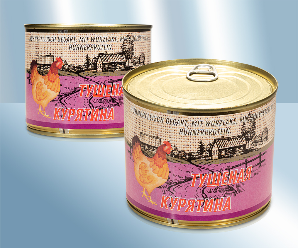 Тушенка из курятины в маринаде, с добавлением куриного белка. LV A 002138 EK..