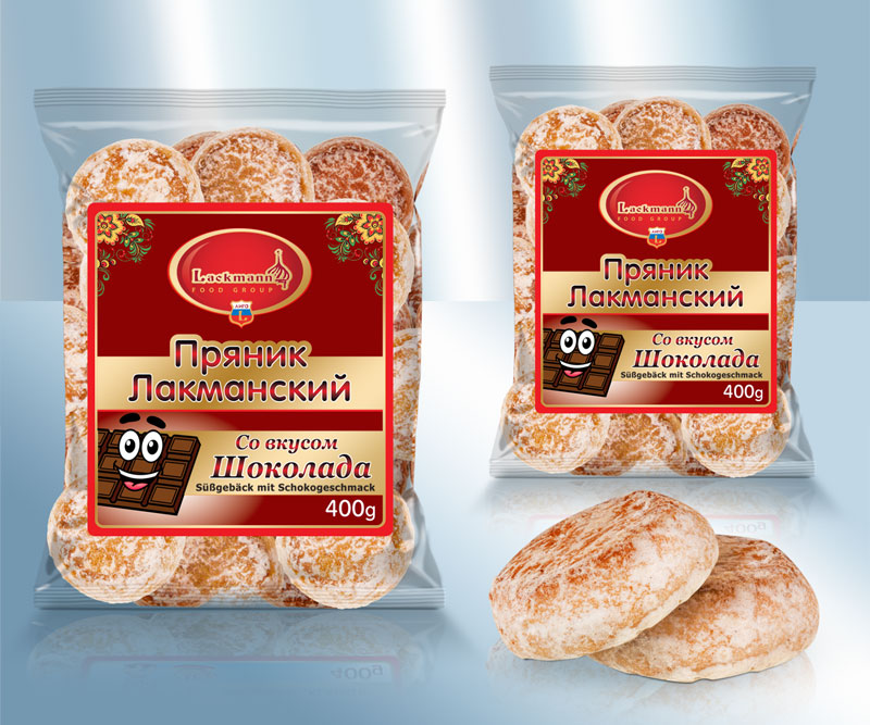 Пряники "Шоколадные" . Состав: пшеничная мука, глюкозно-фруктозный сироп, сахар, вода, крем с содержанием молока (сахар, сывороточный продукт, пальмовое масло, обезжиренное молоко, Эмульгатор E471, pегулятор кислотности фосфат натрия, загуститель каррагинан, ароматизатор), инвертный сахарный сироп (сахар, вода, pегулятор кислотности: (E330, E500)), растительные жиры и масла (ши (масляное дерево), пальма), сильно обезжиренный какао-порошок 4%, Разрыхлитель теста: (E503, E500). Данный продукт может содержать следы: овес, рожь, ячмень, Яйца, Арахис, Орехи, соя, кунжут. Хранить в сухом прохладном месте. Сбыт: Lackmann Fleisch- und Feinkostfabrik GmbH, Carl Benz Straße 10, 77731 Willstätt, Германия. Употребить до: см. оттиск на упаковке, См. на лицевой стороне. Пищевая ценность на 100g: Энергетическая ценность: 1538 kJ / 364 kcal, Жиры: 5,9g, - из них насыщенных жирных кислот: 2,3g, Углеводы: 71g, - из них сахара: 32g, Белки: 6,5g, Соль: 0,30g,