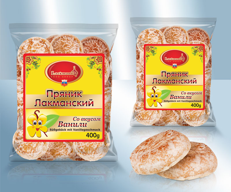 Пряники "Ванильные" . Состав: пшеничная мука, сахар, инвертный сахарный сироп (сахар, вода, pегулятор кислотности: (E330, E500)), глюкозно-фруктозный сироп, растительные жиры и масла (ши (масляное дерево), пальма), порошок цельного яйца, Разрыхлитель теста (E503, E500), ароматизатор. Данный продукт может содержать следы: овес, рожь, ячмень, Горчица, молоко, Арахис, Орехи, соя, кунжут. Хранить в сухом прохладном месте. Сбыт: Lackmann Fleisch- und Feinkostfabrik GmbH, Carl Benz Straße 10, 77731 Willstätt, Германия. Употребить до: см. оттиск на упаковке, См. на лицевой стороне. Пищевая ценность на 100g: Энергетическая ценность: 1568 kJ / 370 kcal, Жиры: 4,5g, - из них насыщенных жирных кислот: 1,8g, Углеводы: 77g, - из них сахара: 42g, Белки: 5,9g, Соль: 0,10g,